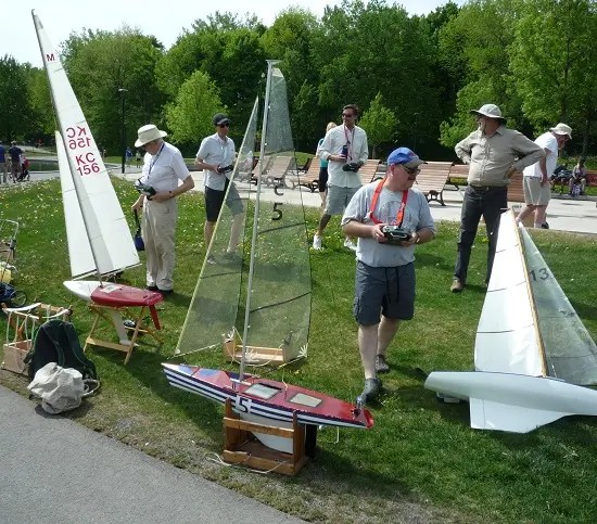 Les bateaux utilisés par les membres du club sont soit achetés entièrement équipés, soit construits par les membres eux-mêmes. La plupart des bateaux des membres du club sont équipés d'une radiocommande pour permettre la navigation à la voile ou au moteur lors des événements organisés des fins de semaine. | ![]() |